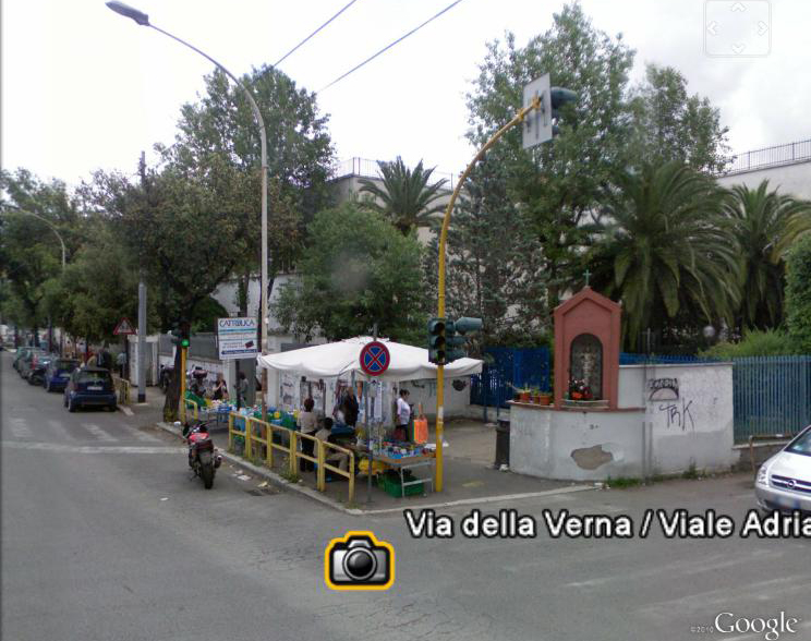 ECCO DI SEGUITO UNA FOTO DELL'INCROCIO, CON LA BANCARELLA IN BELLA EVIDENZA: